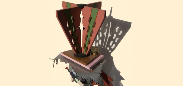 Tanto en la obra gráfica como la objetual plantea organizaciones de forma, color y materiales. Son híbridos que fueron tomando cuerpo, ondularon sus bordes, se salieron hacia un perímetro irregular para cobrar entidad de objeto parado, que puede mutar en su esencia plegable y replegable sobre sí mismos y en el espacio, especie de transformers en búsqueda de sentido.