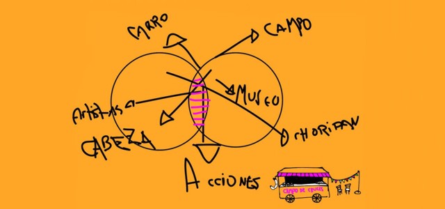 Las acciones de cruce allí presentadas estarán centradas por un lado, en el nexo establecido entre los artistas que están exponiendo en las salas del museo en ese momento y los artistas propuestos por campo de cruces, los que trabajan en base a ese nexo o relación. En esta oportunidad participará el grupo Alo (Cecilia Garzón Maceda, Viviana Murina y Teli Rezzónico) y Ana Grúdine. Registro: Luis Ponce. En la parrilla: Paola Arpino. Y por otro lado estarán las acciones, por parte de campo de cruces, de poner la palabra del artista en circulación.