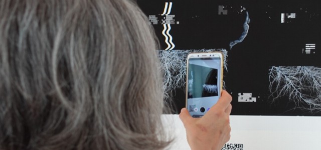 La experiencia de realidad aumentada utiliza el celular como objeto visual y sonoro en el sentido de prótesis visual. Los visitantes a la muestra usan su celular para experimentar algo que no existe en nuestro plano físico. Las fotografías son la base para re-crearse en el mundo virtual. La instalación está compuesta de siete obras digitales impresas con dos personajes: la mujer y el hombre que caminan, saltan y caen al vacío.